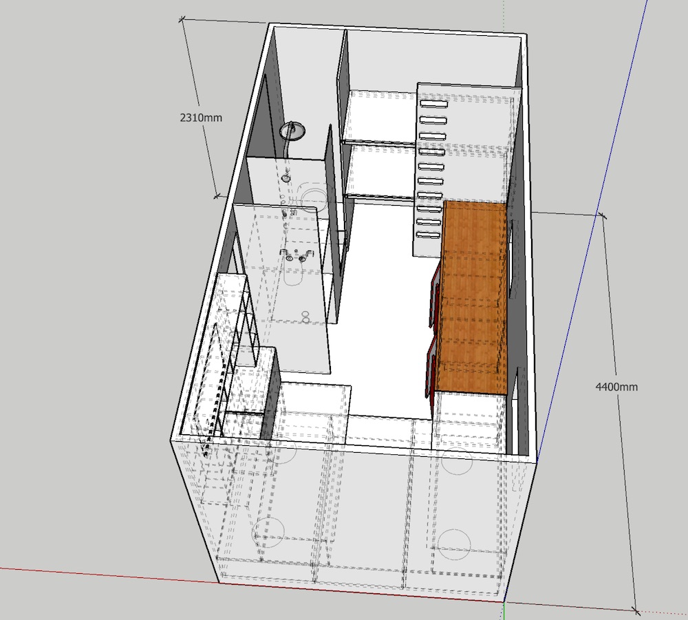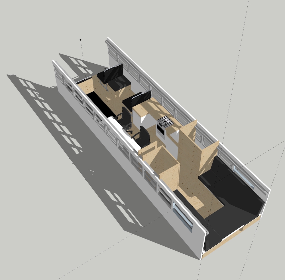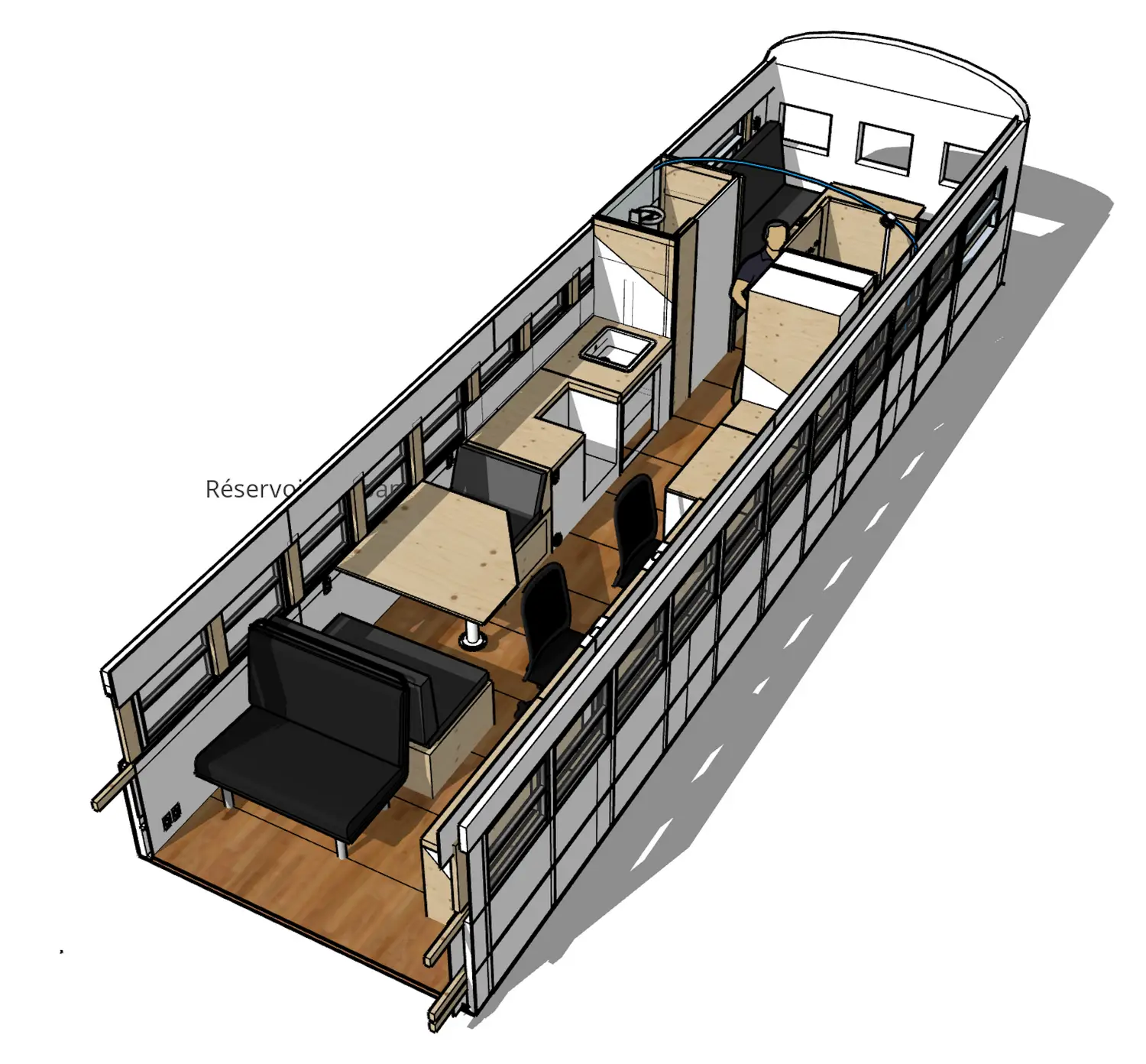 Donc, dès que nous avons commencé à concevoir l’aménagement du bus, nous avons décidé de réaliser les plans sur Sketchup.